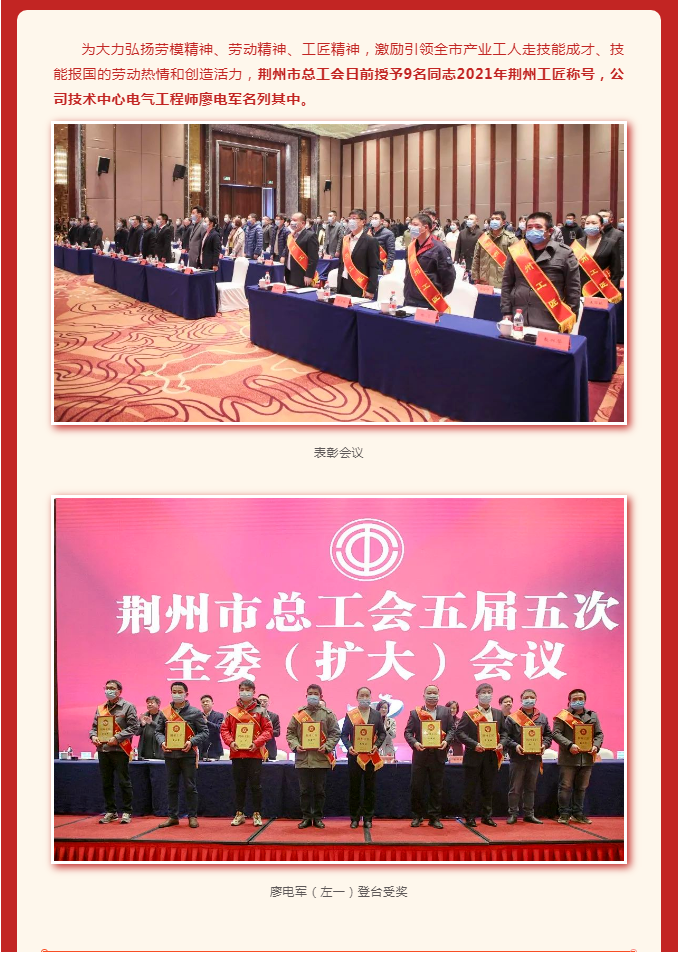 喜訊!菲利華公司廖電軍榮膺“荊州工匠”稱(chēng)號